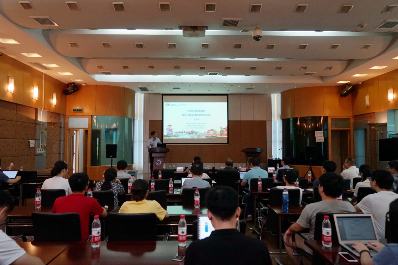 四川大学华西口腔医学院田卫东教授做了《牙及相关组织再生转化研究面临的挑战与机遇》的学术报告,介绍了其牵头的国家重点研发计划“干细胞与转化医学重点专项”项目“基于成体/多能干细胞的牙功能组织模块构建及转化研究”的总体情况及干细胞临床治疗面临的问题及挑战。田卫东以临床医生的身份强调,国际上干细胞技术正飞速发展,研究重点向临床应用与产业化转移,临床治疗将出现颠覆性革新,建议项目集成的信息应覆盖干细胞基础研究、临床转化到产业化全过程,加大对干细胞临床信息的采集,如干细胞临床试验数据、药品、政策法规等。