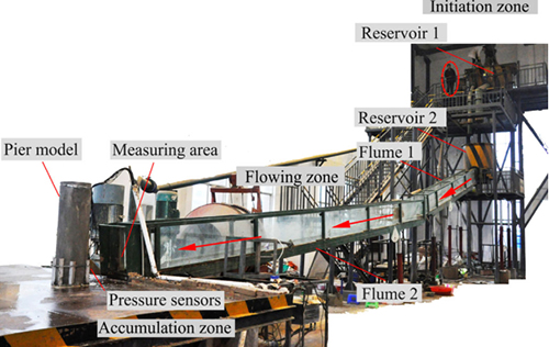新建成(都)—兰(州)铁路跨越龙门山地震带,与沿线54条泥石流沟交叉,有24条泥石流沟采用桥梁跨越,泥石流通过冲击、冲刷、淤埋等方式对铁路桥梁安全运行构成严重威胁。成都山地所何思明研究员团队受中铁二院工程集团有限责任公司委托,开展了室内大比例泥石流-桥墩相互作用物理模型试验研究并取得重要进展。