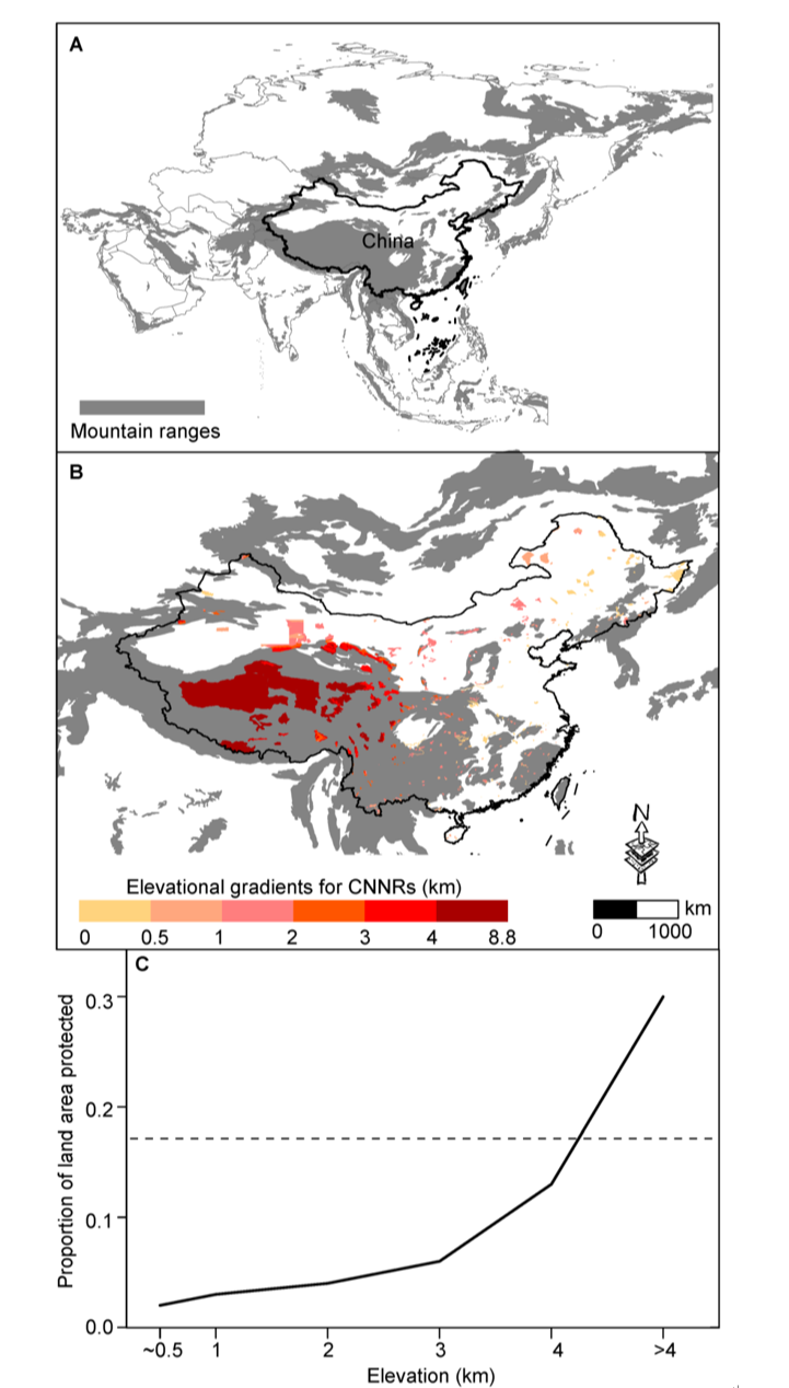 中国国家自然保护区(CNNR)的海拔梯度格局及覆盖率