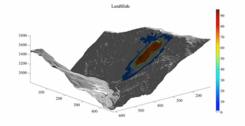 研究发现,该滑坡形成于北京时间2018年10月10日22时05分、规模为29×106 m3,持续89 s,摩擦系数为0.47,运动速度为20m/s等关键参数。在此基础上,研究团队结合高精度地形数据,利用自主研发的滑坡-堰塞湖-溃决洪水灾害链模拟平台开展了白格滑坡灾害链成灾全程模拟和定量预测。计算结果表明:无论是堰塞坝堆积形态、最大库水容量、慢顶溃决时间以及溃决洪水流量过程均与实际相符。