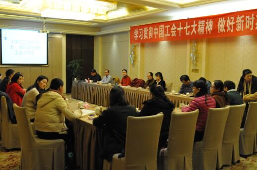 万教授作了题为“学习工会十七大 做好新时期工会工作”的报告。报告介绍了中国工会第十七次全国代表大会基本情况和大会主要成果,重点传达学习了习近平总书记同全国总工会新一届领导班子成员集体谈话主要精神,传达学习了李克强总理作的经济形势报告精神、中央书记处书记王沪宁代表党中央发表的致词精神以及王东明主席代表中华全国总工会第十六届执行委员会所作的报告精神。他指出,中国工会十七大开启了新时代工运事业的新征程,奏响了新时代工会干部继续奋斗的最强音,认真学习宣传贯彻中国工会十七大精神,是当前和今后一个时期各级工会组织的重要任务。报告从工会产生看今天的工会、工会的地位及其与党政的关系、紧扣时代主题做好工会工作等几方面阐述了新时期工会工作创新发展的思考与探讨。他指出,当新时期合格工会干部要对工会工作有三点理性认识:一是坚持党的领导是原则;二是坚持依法维护是准则;三是坚持维护职工是职责。