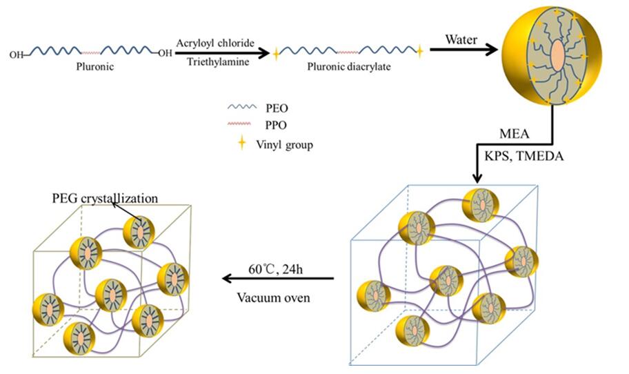 由修饰双键的普朗尼克胶束交联的水凝胶-弹性体复合物示意图