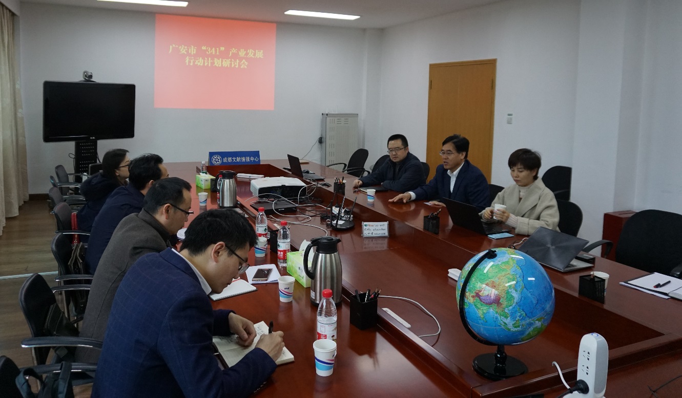 11月21日,广安市经济和信息化委员会主任赵胜强一行四人访问中国科学院成都文献情报中心,就委托中心承担的“广安市‘341’产业发展行动计划”项目进行研讨交流。成都文献情报中心主任张志强、中心区域发展咨询部主任肖国华、副主任欧阳峥峥与项目组成员十余人参加了会议。