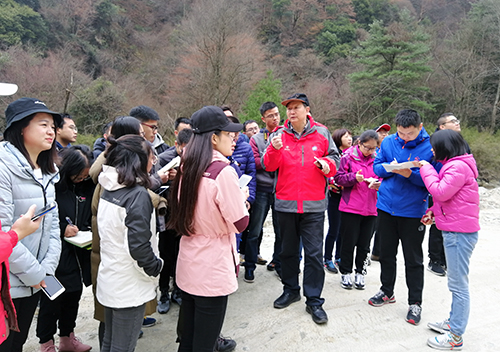 实习期间,研究生们沿途观察了从成都平原逐步过渡到丘陵的地貌,观察了平武县魏坝附近、宝灵寺水电站等地的滑坡、泥石流现象,聆听了两位专家讲解岷山山系龙门山断裂带及摩天岭南麓地质地貌与涪江水系特征,观察了沿途的滑坡、泥石流及山洪发育形成的地质条件及危害。在唐家河自然保护区杨艳老师的带领下了解了唐家河的丰富的植物、生物种类及分布情况。