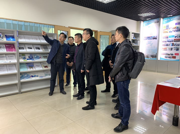周杨、张继华、朱建岗、马宏伟等一行还参观了中心科技成果展厅,一同前来座谈的还有中科院苏州纳米技术与纳米仿生研究所的专家。