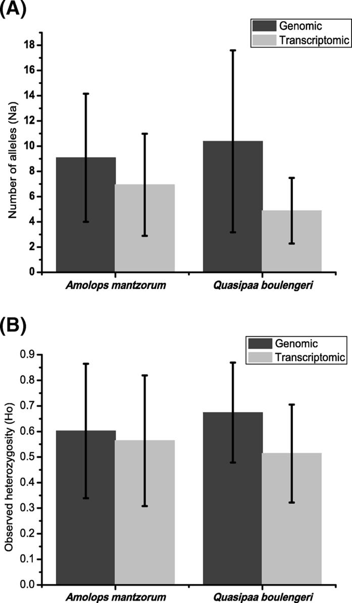 转录组和基因组筛选得到的微卫星多态性差异比较