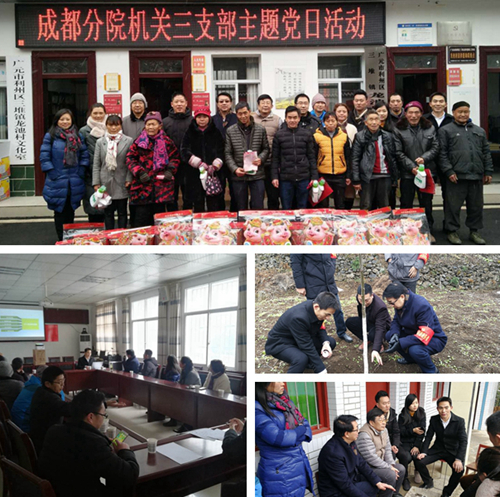 1月9日至10日,成都分院机关第三党支部赴成都分院扶贫定点帮扶村——广元市利州区三堆镇龙池村开展“新春送温暖,党群一家亲”党日活动。活动围绕新春慰问、树苗护冻、理想探讨等主题开展,支部全体党员参加了此次活动。