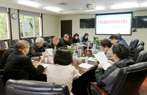 成都分院副院长、系统单位党委委员陈锋传达《中国科学院2019年深化改革工作要点》和院直属机关党委《关于举办中国科学院庆祝新中国成立70周年和建院70周群众活动的通知》文件要求。他指出,各单位要按照院党组统一部署,围绕庆祝新中国成立70周年和建院70周年及纪念五四运动100周年,组织开展系列主题活动。
