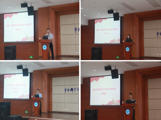 在表彰大会上,韦方强宣读了《中共中国科学院重庆绿色智能技术研究院委员会关于表彰优秀共产党员、优秀党务工作者和先进党支部的决定》。科研一线优秀共产党员代表孙启龙、管理一线优秀共产党员代表肖云、支撑和院属企业优秀共产党员代表宋桥台、研究生优秀共产党员代表高阳阳分别结合自己的工作岗位和学习经历分别做了振奋人心的发言。袁家虎、韦方强、张长城、陈永波分别向王丽等23名优秀共产党员,龙晖、李向东2名优秀党务工作者和信息所党支部、智能所二支部2个先进党支部颁发了荣誉证书。