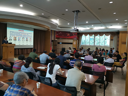 吴宁作了题为“‘不忘初心,牢记使命’——中国科学院的历程”的主题报告,报告运用大量史实资料,全面回顾了中国科学院的历史沿革、中国科学院办院方针的演变以及新时期的中国科学院。1949年到1955年,中科院基本建成了科学研究的组织基础、科研队伍的人员基础和科技政策的制度基础,为新中国此后十年的科技起飞夯实了基础;1956年到1966年,中科院充分发挥“火车头”作用,是各学科研究和“两弹一星”等重大任务的中流砥柱;1978年迎来了科学的春天,此后40年来,围绕国家“科教兴国战略”“可持续发展战略”“创新驱动发展战略”等战略目标,中科院迎难而上,勇于承担党和国家交付的重要战略使命;新时期,中科院一如既往地在多项战略科技任务中发挥了关键作用。2013年7月习近平总书记视察中科院时对我院的肯定,以及在十九大报告中提及我院的科技成就,极大地鼓舞了中科院人。