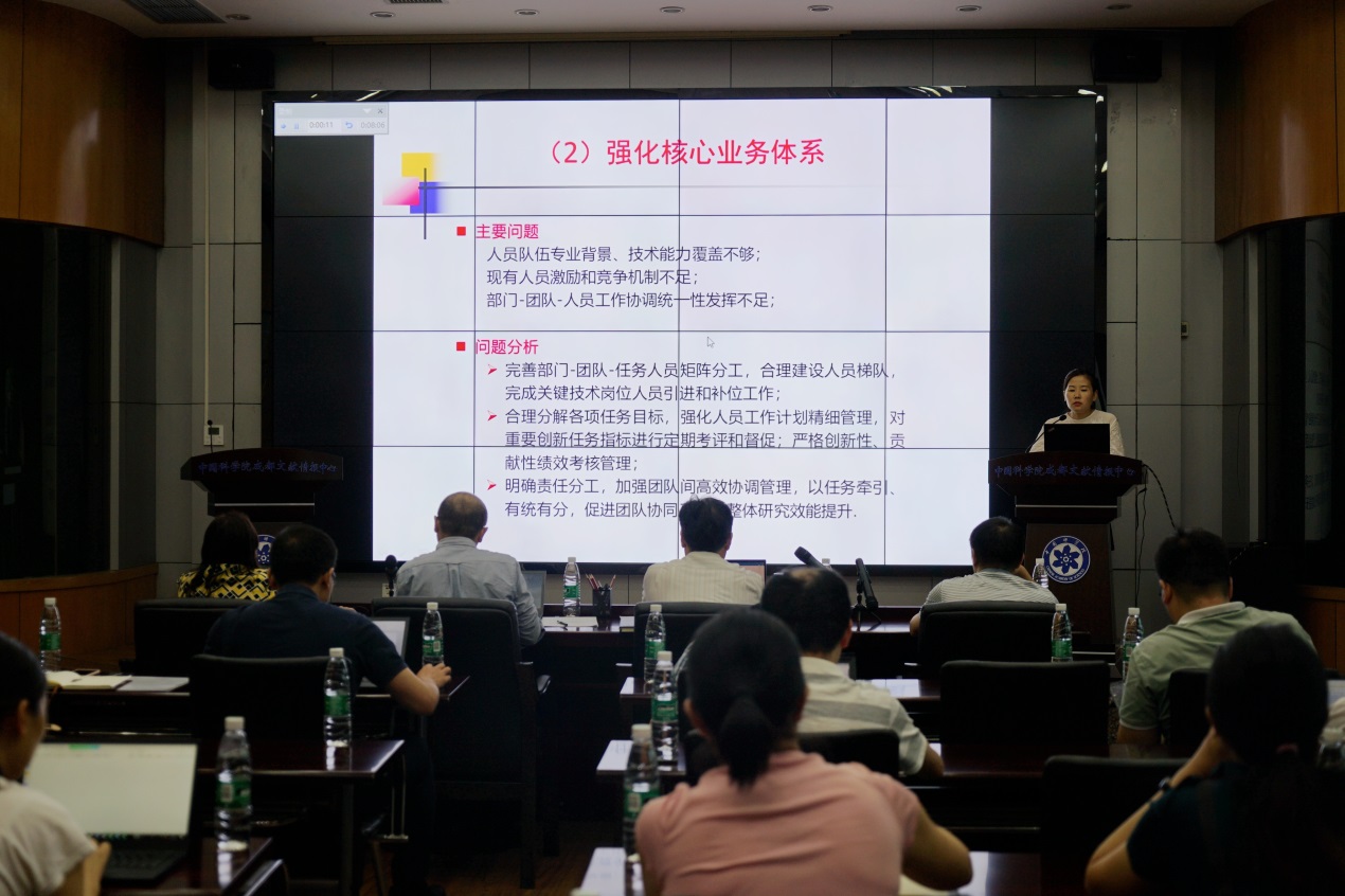 成都文献中心“不忘初心、牢记使命”主题教育领导小组副组长、中心主任张志强主要就第一阶段上半年工作总结会中讨论的找差距抓落实两方面提出意见和要求。首先在找差距方面确认中心存在很多不足之处,一是对中心目标定位发展自信心不足;二是发展方向方面对环境变化的认识不足;三是在体系建设方面存在差异;四是管理机制方面,部门路线图不清晰;五是任务承担方面,融入国家、中科院和地区重要项目能力不足;六是成果产出方面,高影响力智库产品不足;七是人才队伍建设方面,引进和培养的高水平专家不足;八是激励机制不足;九是部门负责人担当作为不足。张志强指出,针对存在的问题,应该狠抓落实,首先要做到牢记主题教育的目标,认清现阶段主要任务;二是强化高质量发展理念,落实到各部门各团队具体措施中;三是主动应对大数据信息环境变化的竞争与挑战;四是融入国家、中科院和省级重大科技项目中;五是产出高质量智库成果;六是强化团队组织管理机制和对外协调合作网络机制;七是加大高质量智库成果激励机制;八是严格打造能打硬仗的工作队伍;九是明显提升干部担当作为意识。要理论联系实际,通过此次主题教育促进单位发展。
