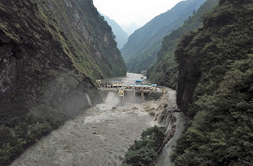 沏底关沟泥石流堵塞岷江淹没太平驿水电站