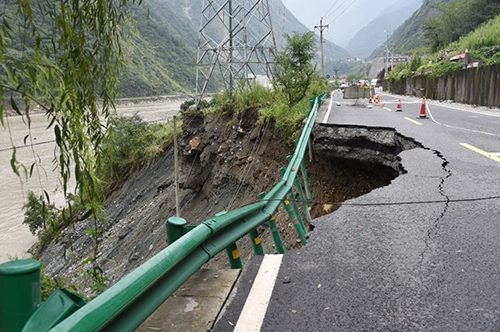 映秀到汶川段磨子沟一碗水隧道口道路路基侧蚀