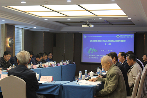 会上,胡为民首先对各位院士专家长期以来对西藏工作的关注与支持表示感谢,并介绍了西藏生态文明高地规划编制的背景,回顾了西藏生态安全屏障保护与建设工作取得的成效。项目负责人、成都山地所王小丹研究员汇报了大纲编制的重要意义、总体思路和布局、重点建设任务等内容。