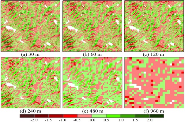 地形校正前后多尺度LAI差值空间分布 |