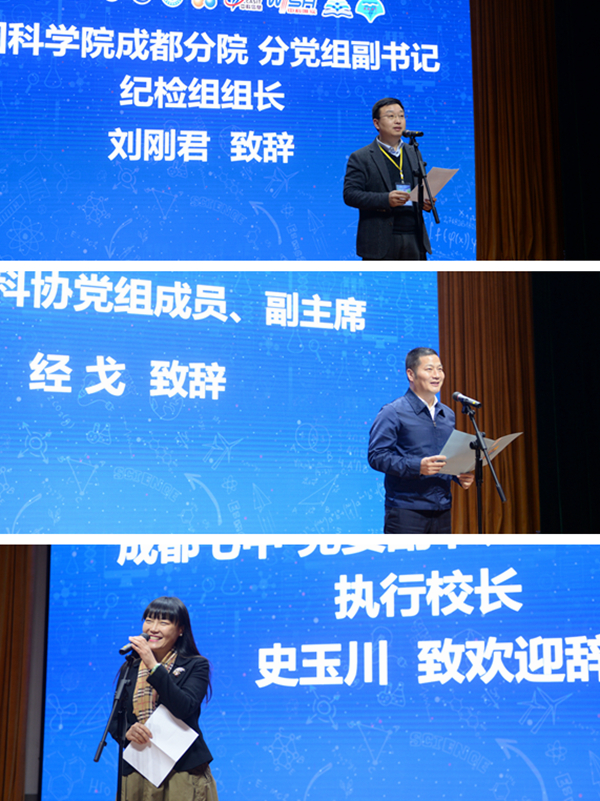 四川省科协副主席经戈表示中科院作为科技创新的“国家队”,肩负着推动科学知识传统方式传播向现代化模式转变的重要任务。希望多面向公众尤其是青少年学生普及科学知识,提升全民科学素养、提高国家自主创新能力、促进全社会发展。同时希望同学们能够走近科学、学习科学、感受科学,在科学饕餮盛宴中汲取科学营养,激发科学热情,树立科学理想,珍惜难得的交流学习机会,不断学习知识,充实自己,施展抱负,成就梦想。