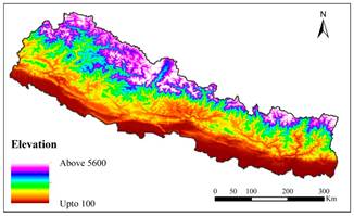 图1 尼泊尔100米等高图