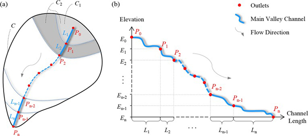 为将体积法应用于高落差小流域山洪淹没计算,中科院成都山地所数字山地中心研究团队提出了一种基于微分思想的微分体积法。该方法将流域主沟道划分成若干微分沟道,使得微分沟道内的高程落差相对较小,从而可以将对应微分流域内汇集的最大瞬时径流量,运用体积法在该微分沟道的数字地形模型(DEM)上计算得到洪水淹没范围,然后将所有的微分沟道淹没区域合并就能获得整个主沟道的山洪淹没范围。同时,还提出了微分沟道最佳划分数量的选择判定方法。研究以九寨沟风景区内的扎如沟流域为试验区,计算获取了2018年7月10日暴发的10年一遇山洪的近似最大淹没范围。计算结果与现场采样数据吻合较好,证明了微分体积法在高落差小流域山洪最大淹没范围计算中的可行性和有效性,较好地解决了在缺少实测水文资料的高落差小流域中快速获取山洪最大淹没范围的难点问题。
