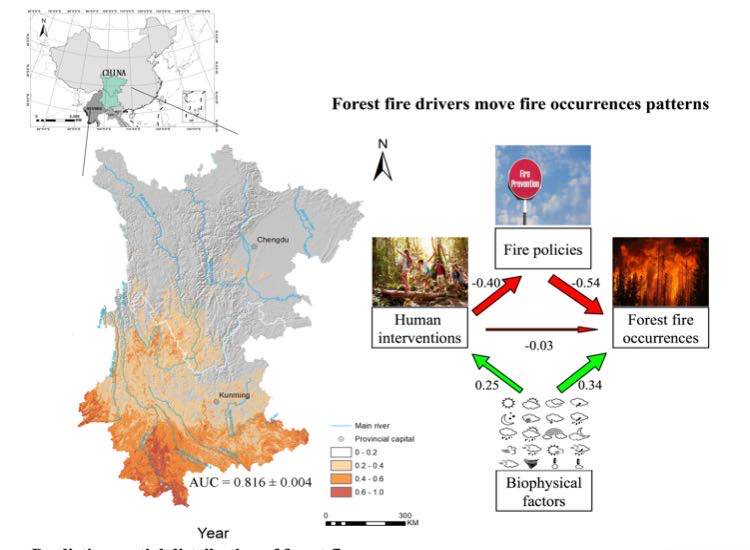 该研究获得国家自然科学基金委员会(31700544)、四川省科学技术厅(2020YFS0029)、中国科学院西部之光“西部青年学者”项目(2016XBZG_XBQNXZ_B_005)、中国科学院山地生态恢复与生物资源利用重点实验室,生态恢复与生物多样性保育四川省重点实验室(kxysws1901)、中国科学院仪器设备研发项目(YJKYYQ20190064)以及中华人民共和国教育部关键研究中心项目(16JJD630011)的支助。近日以“Fire from policy, human interventions, or biophysical factors? Temporal–spatial patterns of forest fire in southwestern China”为题发表于Forest Ecology and Management。