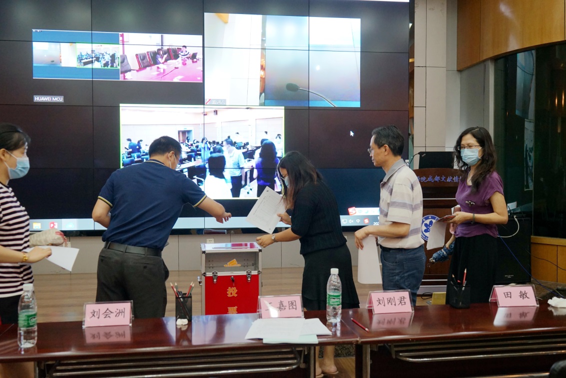 7月21日,中科院成都文献情报中心召开领导班子任期考核大会。中科院人事局副局长蔡宏志、文献情报中心主任刘会洲、成都分院分党组书记王嘉图、分党组副书记刘刚君,中科院人事局领导干部处以及成都分院组织人事处、监察审计处相关领导等组成的考核组参加了会议。由于疫情原因,会议采用现场与视频同步进行的方式召开,中科院人事局领导、文献情报中心党委书记何林等通过视频会议方式参加大会。成都文献中心领导班子成员、党委委员、纪委委员、中层干部、党支部书记、职代会代表、业务骨干等40余人参加了会议。会议由王嘉图主持。