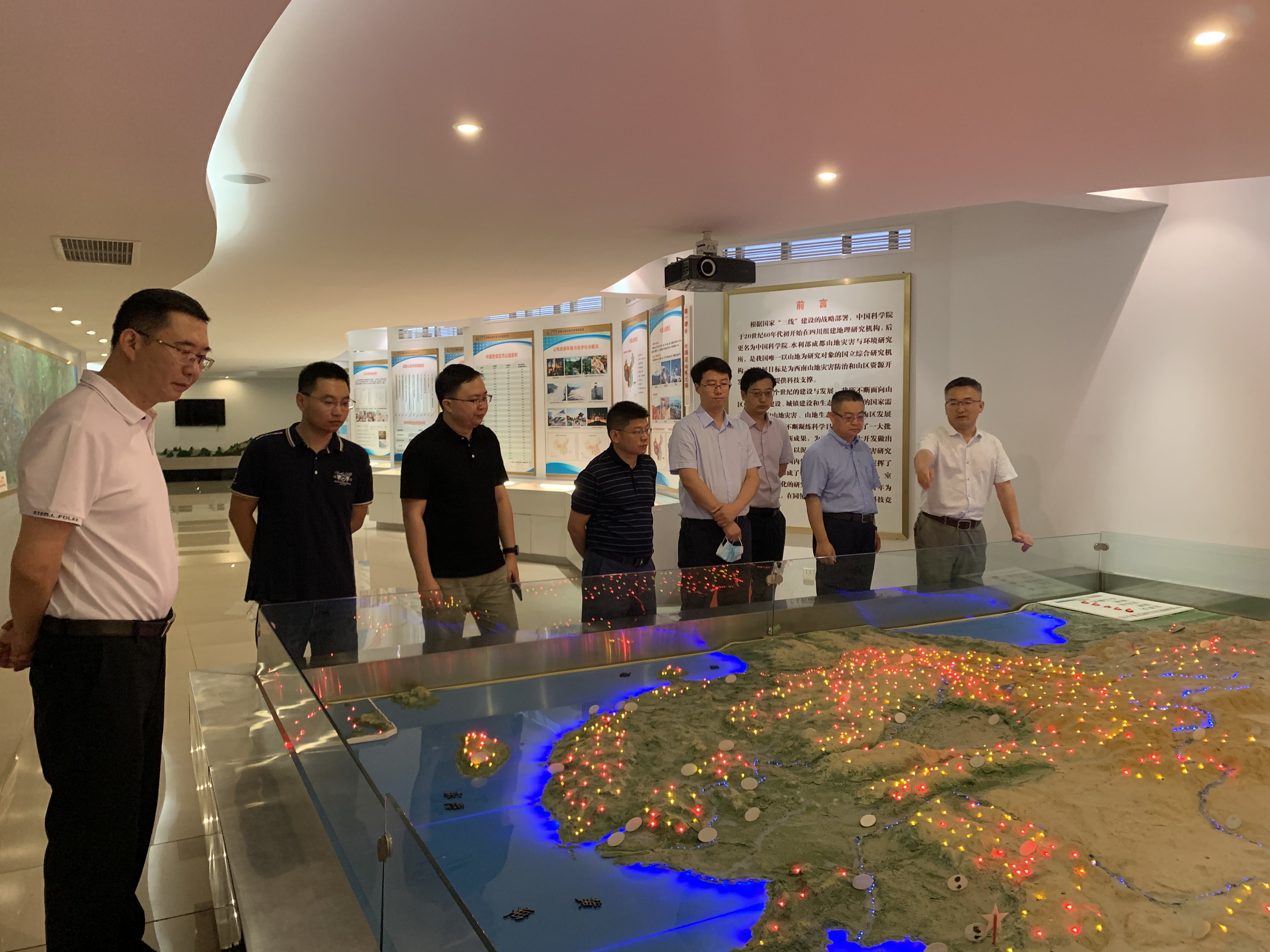 会前,陈晓清等陪同宫自强一行参观了成都山地所科技展馆和泥石流模拟大厅。