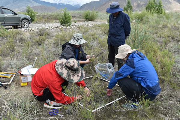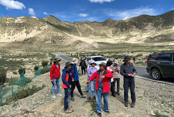 8月7日至15日,在熊东红研究员的带领下,由15人组成的综合科考队又对雅江河谷中段、拉萨河流域、年楚河流域和藏北高原等开展了综合性科学考察。科考队员们克服了高原缺氧、气候多变等诸多困难,从拉萨出发,途径堆龙德庆、曲水、当雄、贡嘎、扎囊、乃东、尼木、仁布、日喀则、谢通门、南木林、白朗、江孜、申扎、班戈等区县,全程2500多公里。综合科考队重点考察了雅江河谷沿途的防护林建设工程、土地沙化防治工程等典型生态治理工程的实施情况,并完成了遥感复核工作。张信宝研究员作为指导专家,为科考队员们系统介绍了相关地质地貌、气候、植被、土壤等理论知识,并针对典型生态治理工程实施区域提出了研究建议,为下一步开展生态工程实施成效评估提供了重要指导,也为子专题的后续研究工作顺利实施打下了坚实基础。