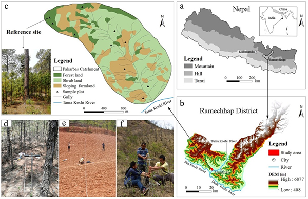 尼泊尔地处喜马拉雅山脉南坡,是一个多山的国家,其丘陵地区约占国土总面积的30%,养育着该国45%的人口。尼泊尔的经济主要依靠农业,其中46.73%的农业用地分布在中部丘陵区。近年来,日益增强的人类活动和全球变化给本就脆弱的尼泊尔丘陵生态系统增大了土壤侵蚀风险。中科院成都山地所熊东红研究员团队研究发现,尼泊尔柯西河流域中游典型小流域137Cs面积活度及其计算的土壤侵蚀速率的空间变化与210Pbex测量的等效结果高度一致,但基于210Pbex获得的土壤侵蚀速率高于基于137Cs获得的侵蚀速率值,这一结果表明了在过去的20年中该流域的土壤侵蚀呈现加速的态势,也侧面证明137Cs和210Pbex双核素示踪技术具有评估近期(20-30年)土壤侵蚀变化的潜力。不同土地利用类型的土壤侵蚀速率测算结果表明,流域内坡耕地侵蚀速率最大,林地最小,值得注意的是,灌木林地侵蚀速率高于一般的通常值,达每年每公顷32.52 t,与坡耕地非常接近,且因其面积占比高,贡献了该流域土壤净流失的55.08%,成为流域土壤侵蚀的主要策源地之一。尽管过去20年研究区的年降雨量呈下降趋势,但该区域土壤侵蚀仍在加剧,这与当地持续增加的干旱和人类扰动阻碍植被、作物生长密切相关。这些结果表明,尼泊尔中部山区坡耕地和灌木林地均极易遭受侵蚀,除农业生产中迫切需要采取保护性耕作(包括等高耕作、少耕/免耕、植物篱)措施外,还应特别考虑面积占比较大、土壤侵蚀严重的灌木林地的封禁、控牧或造林、补植等土地管理策略,以控制该区(特别是干旱河谷区)坡耕地和灌木林地的严重水土流失。该研究对喜马拉雅山区的水土保持建设和农业可持续性发展具有重要的指导意义。