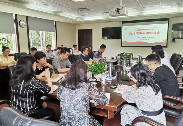 9月1日下午,成都分院分党组理论学习中心组召开专题学习(扩大)会,认真学习2020年中科院夏季党组扩大会议精神和四川省委十一届七次全会精神。分党组书记、副院长王嘉图,分党组成员、副院长陈锋和分党组副书记刘刚君参加学习。会议由王嘉图主持。