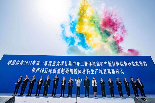 3月28日,峨眉山市环境和矿产新材料联合研究院签约暨年产40万吨新型超微细粉材料生产项目奠基仪式在峨眉山举行。中国科学院院士谢毅、成都分院纪检组组长刘刚君、中科院合肥物质科学研究院副院长宋云涛、中共峨眉山市市委书记龚德勤等领导出席活动。