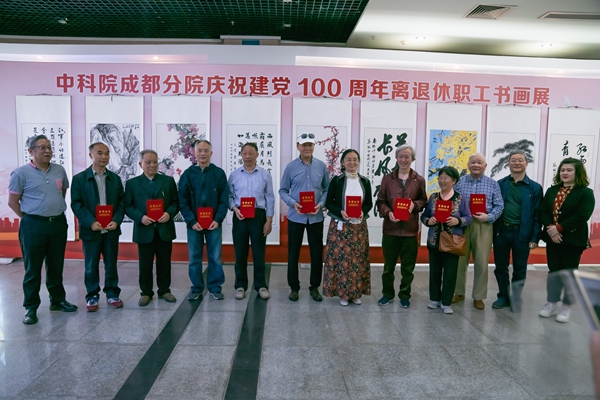 中科院离退休局曹以玉副局长、成都分院分党组书记王嘉图、成都生物所党委书记叶彦、成都有机公司党委书记王公应、成都信息公司党委副书记帅红涛、成都唯实公司纪委书记杨文晴、成都文献中心纪委书记江晓波出席书画展开幕式。开幕式由成都分院纪检组组长、分党组成员刘刚君主持。