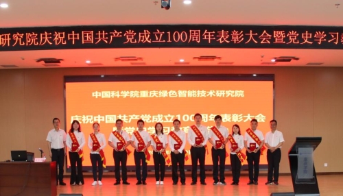大会在雄壮的国歌声中拉开序幕。会上,韦方强宣读了《中共中国科学院重庆绿色智能技术研究院委员会关于表彰优秀共产党员、优秀党务工作者和先进党支部的决定》。29名优秀共产党员,10名优秀党务工作者和职能部门党支部、信息所党支部和研究生党支部3个先进党支部分别上台领奖。