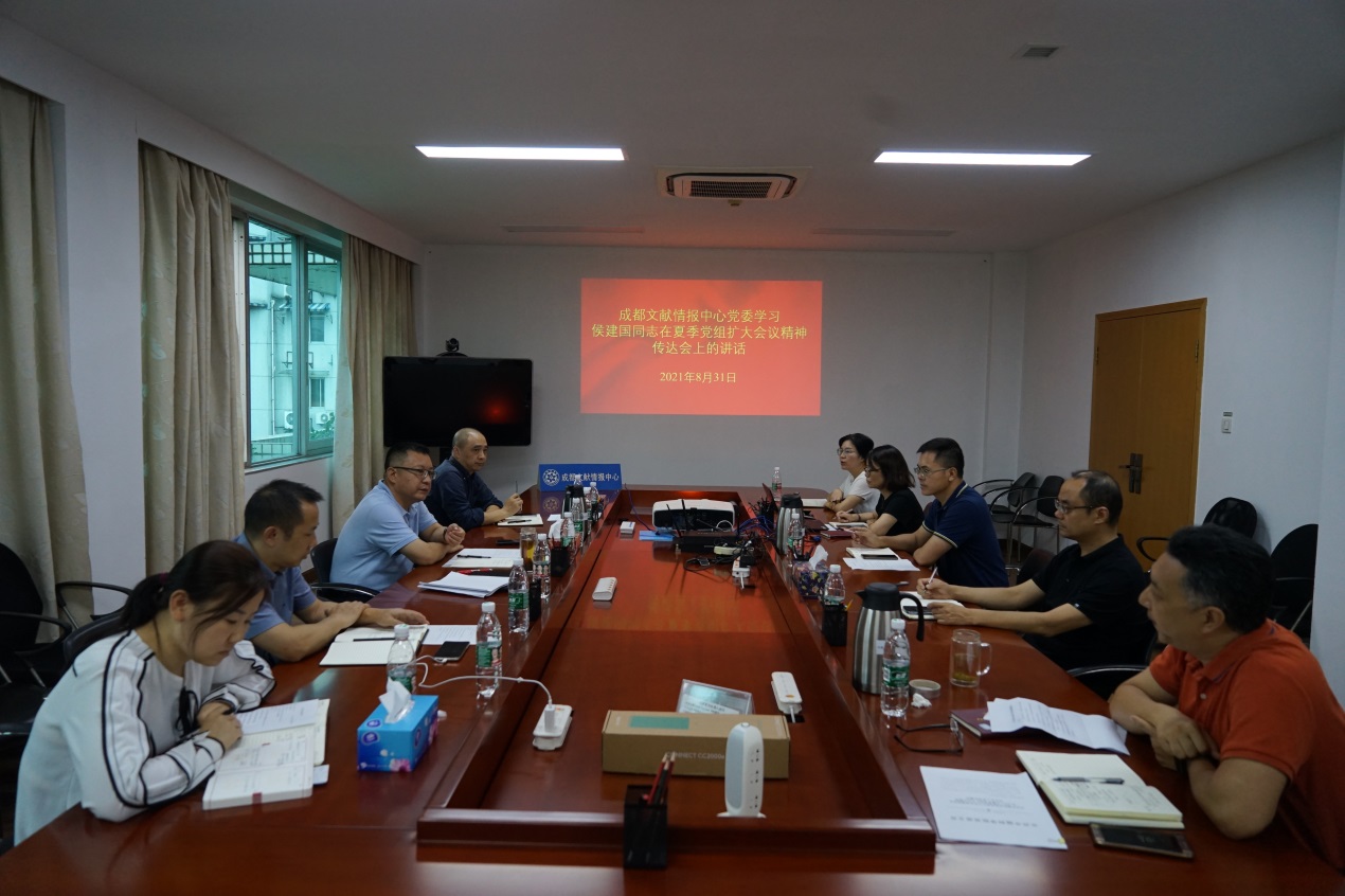 8月31日,成都文献情报中心召开党委会议,深入学习中科院院长、党组书记侯建国在2021年夏季党组扩大会议精神传达会上讲话,研究落实会议精神的工作思路和举措。