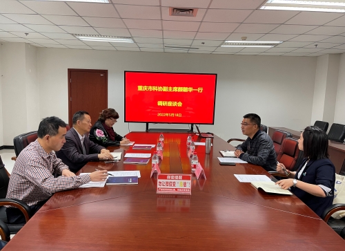 5月18日,重庆市科协副主席颜朝华一行调研重庆研究院,重庆研究院党委副书记陈永波参加会议。