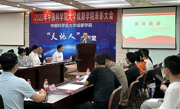 会上,国科大成都学院对在2022年“榜样的力量”系列活动中获评“榜样人物”和研究生学术行为规范知识竞赛活动中获奖的同学进行表彰。获奖代表成都有机所刘锡亮和成都生物所吴冬梅作主题发言。
