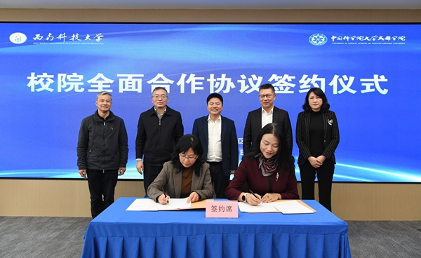 2月14日,国科大成都学院与西南科技大学签署院校全面合作协议。西南科技大学党委副书记、校长黄琦,中国科学院成都分院副院长、分党组成员刘庆,四川天府新区党工委委员、管理委员会副主任钟红卫参加签约仪式。会议由西南科技大学副校长尚丽平主持。