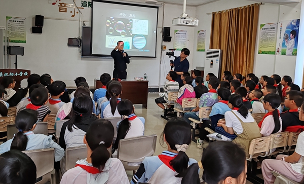 此次公益助学还举办了“七彩世界,精彩科学”科普活动。中国科学院物理研究所副研究员李治林以通俗易懂的语言,带领汉阳小学校同学们走进了充满奇幻色彩的科学世界。李治林在报告中介绍了生活中关于光与色彩的各类现象及其背后的科学原理,包括色散、散射、干涉、旋光等常见生活现象。同时结合生活物品,通过简单的现场实验让同学们真切感受到了科学的独特魅力及人们眼中看到的色彩所蕴含的科学道理。