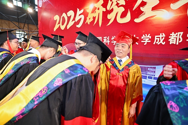 典礼上,硕、博毕业生代表深情回顾求学与科研之路,畅想未来。成都地区各培养单位领导和导师代表为全体毕业生扶正流苏。毕业生代表向导师献花,表达感念师恩之情。毕业典礼在师生合唱的歌声与誓言中圆满落幕。
