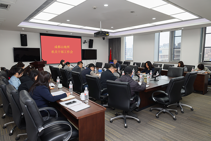 3月2日,成都山地所以新春第一会的形式召开了干部工作会议,学习领会习近平总书记重要讲话精神和中央关于开展树立和践行正确政绩观学习教育的通知要求,谋划部署2026年重点工作。党委书记、副所长谭多财主持会议并提出工作要求,纪委书记周鹏浩和全体中层干部参加会议。