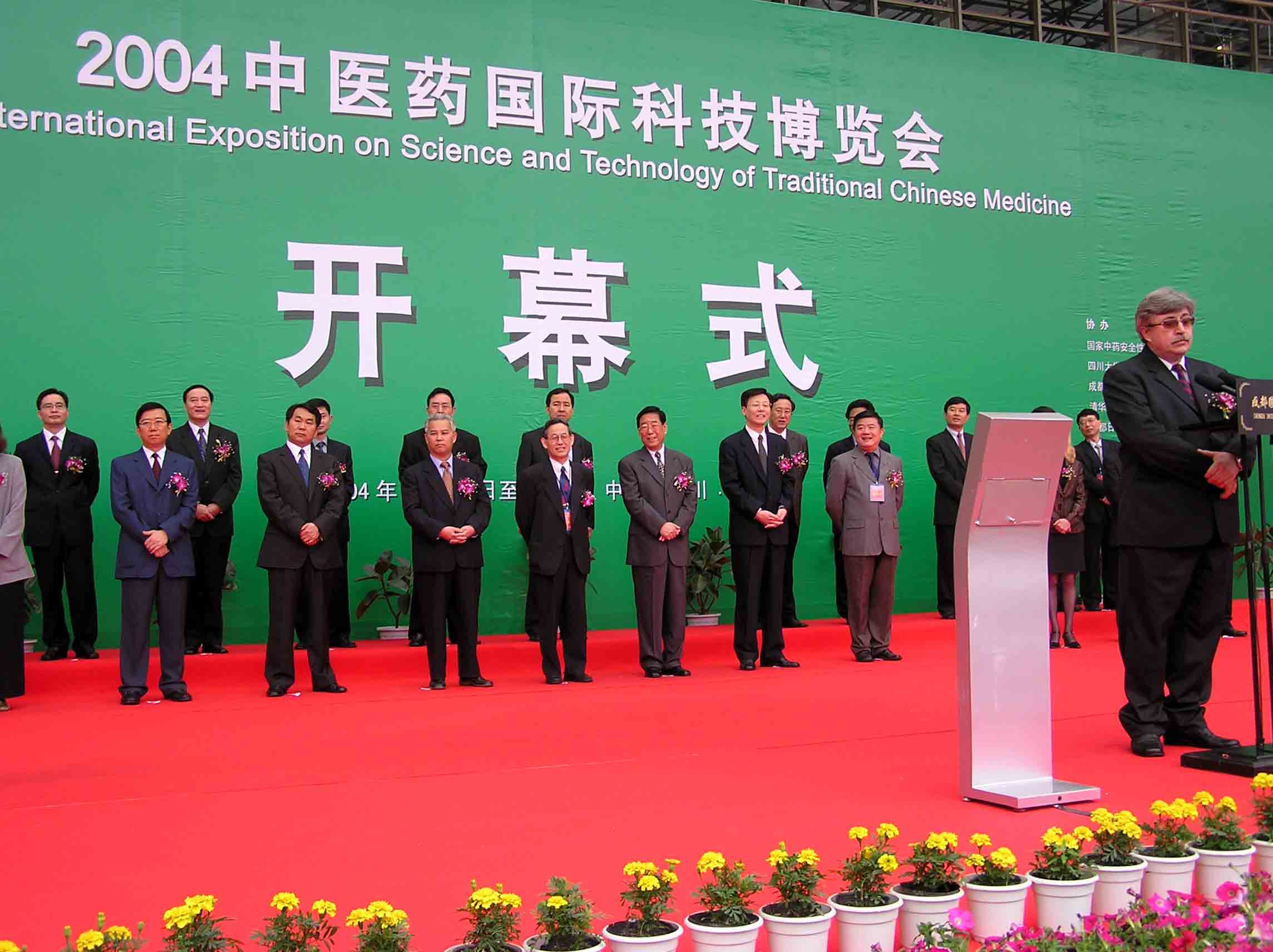 由国家科技部、卫生部、食品药品监督管理局、中医药管理局和中国科学院共同支持,四川省人民政府主办、成都市人民政府承办的2004年中医药国际科技博览会,于2004年4月24日在四川成都开幕。国家科技部副部长李学勇,国家中医药管理局副局长李振杰,中国科学院副院长陈竺,省委副书记陶武先,省委常委、秘书长郭永祥,省委常委、市委书记、市人大常委会主任李春城,副省长柯尊平,市委副书记、市长葛红林和摩尔多瓦共和国驻华大事维克多•鲍尔舍维奇等中外嘉宾出席了开幕式。
