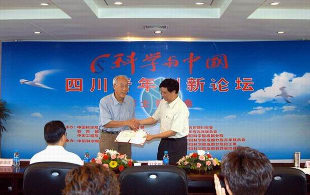论坛开始前,成都分院院长、中国科学院青联副主席、省青联副主席彭宇行在致辞中说,刘先生以高度的历史责任感和使命感,为我国资源、环境的可持续利用和经济社会的和谐发展作出了重大贡献,刘先生孜孜不倦追求科学真理的精神和高贵品质,赢得了广大科技人员特别是青年科技人员的尊重。成都分院副院长黄泽永向刘宝珺院士颁发了聘书,聘请刘宝珺院士为四川青年创新论坛报告人。