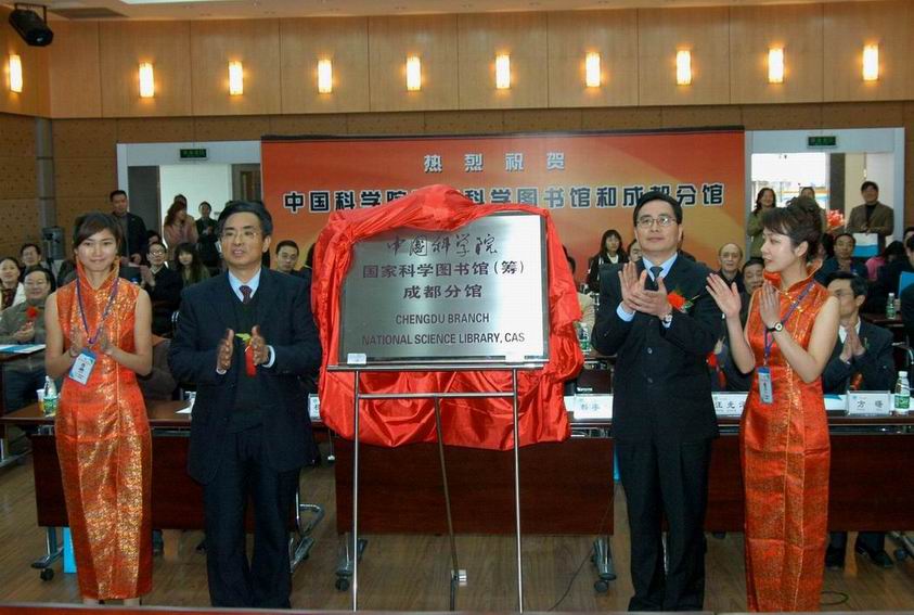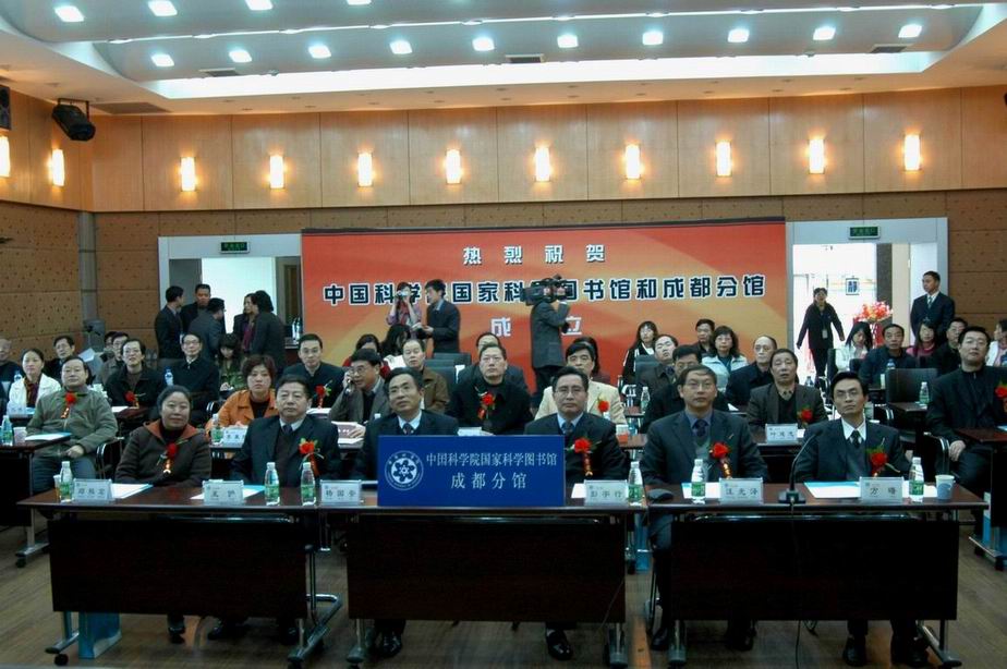 在成都分馆的揭牌仪式分会场上,中国科学院成都分院院长彭宇行、党组书记汪光泽、四川省科学技术厅厅长杨国安、成都市科技局副局长丁小斌和四川省文化厅、四川省图书馆学会、四川省高校图工委、四川省图书馆、四川省中心图书馆委员会、成都市图书馆、在蓉各重点高校图书馆、省市各科技情报所的领导,以及中国科学院成都各所(公司)领导与信息中心负责人和成都分馆的领导与职工代表共80余人参加了揭牌仪式。成都分院彭宇行院长和四川省科技厅杨国安厅长为中国科学院国家科学图书馆成都分馆揭牌,并分别致辞表示祝贺。