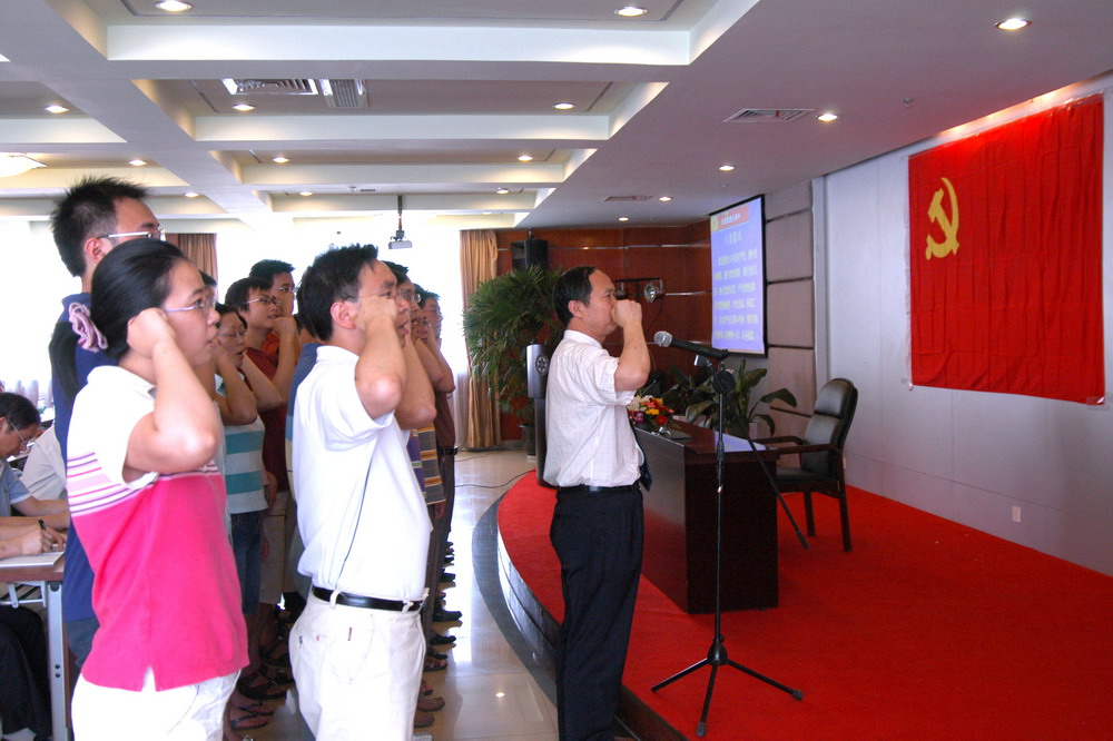 会上举行了新党员宣誓仪式。分院党组书记、副院长彭玉水带领30名新党员举起右手,在党旗下庄严宣誓,要遵守党的章程,履行党员义务,为共产主义奋斗终身。