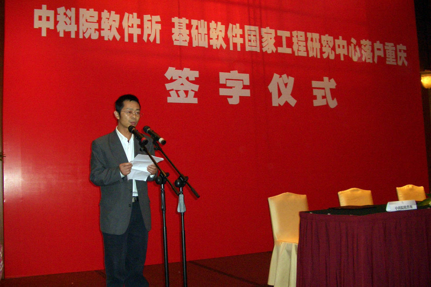 11月7日,中国科学院软件研究所、基础软件国家工程研究中心与重庆市信产局、西永微电子产业园区正式签署协议,共同合作建设重庆软件基地,这是落实路院长“大力加强院地合作,推进地方经济建设”的一件大事。重庆市常务副市长黄奇帆、中科院成都分院副院长袁家虎、中科院软件研究所所长李明树等领导参加了签约仪式。