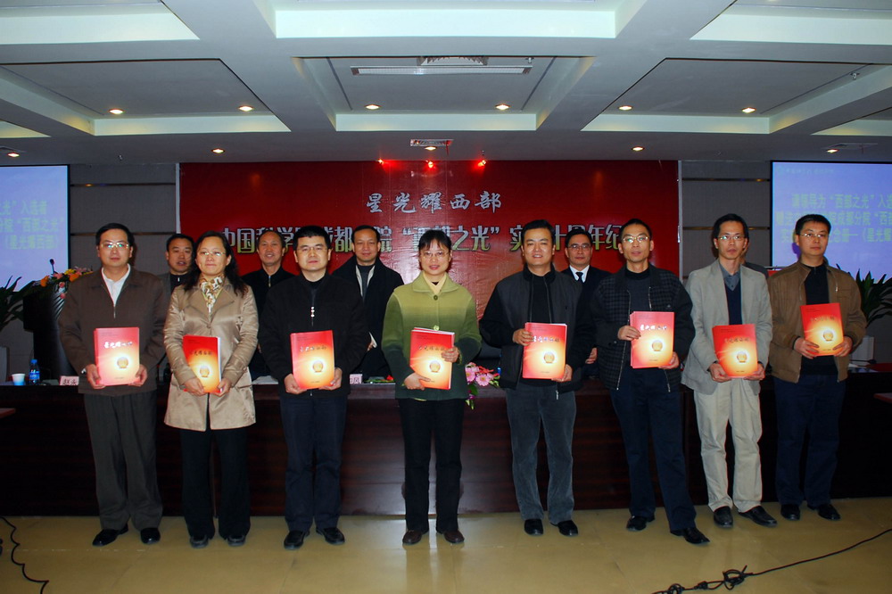 2007年12月4日,成都分院举办了“西部之光”实施十周年纪念座谈会。中国科学院常务副院长、党组副书记白春礼为成都地区“西部之光”实施十周年题词:“为西部培养人才,促西部科技进步”。四川省委组织部副部长王川,院人教局副局长李和风,省委组织部人才处处长李国贵,院人教局人才处处长唐裕华,成都分院院长彭宇行,党组书记、副院长彭玉水,副院长袁家虎,副院长、党组副书记赵永涛,院长助理葛丽佳,分院系统各单位主管领导、人事处长,中科院研究生院、广西植物所、拉萨生态站领导及“西部之光”入选者和青年科技人员代表参加了座谈会。会议由成都分院院长彭宇行主持。