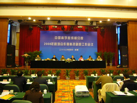 为更好地落实科技发展观和创新三期我院院地合作工作方针,进一步凝炼和完善十一五成都分院院地合作目标任务,切实地为地方经济社会发展服务,2008年4月7日—8日,成都分院在龙泉召开了2008年院地合作暨科技副职工作会。院地合作局领导、院属成都地区各单位分管领导、科技处处长、人事处长、有关科技人员、在任科技副职、四川省科技厅、重庆市科委、西藏自治区科技厅有关领导以及与中科院合作的重点地市县领导近100人参加了大会。大会由成都分院院长彭宇行主持。