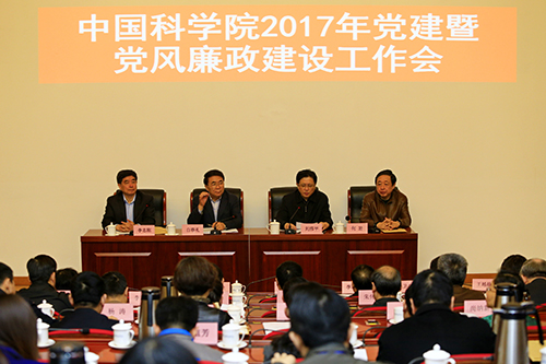 3月17日,中国科学院2017年党建暨党风廉政建设工作会在京召开。中科院院长、党组书记白春礼,党组副书记、副院长刘伟平,中央纪委驻中科院纪检组组长、党组成员李志刚,党组成员、副秘书长何岩出席会议。会议由刘伟平主持。