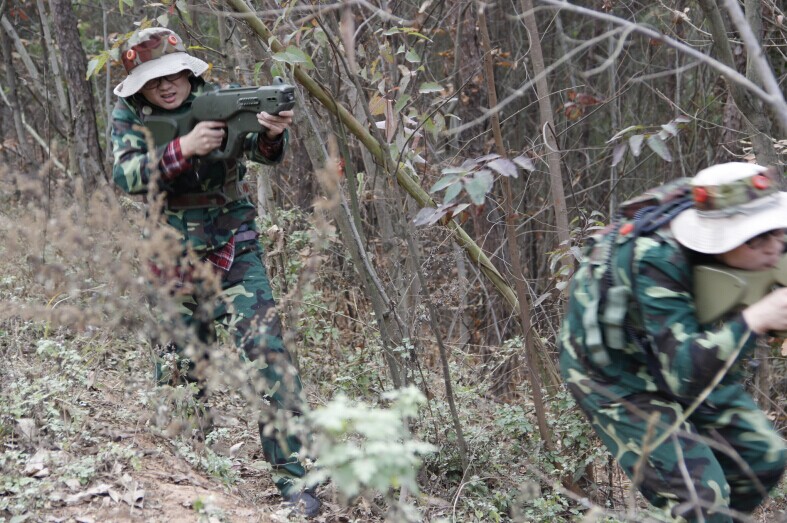 接下来四队整合为两支队伍——“KO队”和“红日队”来进行“真人CS”环节。在本环节中,两队进行PK赛,分别完成“阵地战”、“斩首行动”以及“歼灭战”三个项目。此环节除了是一次团队协作力的极大考验,也是一次超越自我的历练,让队员能体验真实战场环境下才能激发出来的勇气、信念和谋略。在整个环节中,一开始被认为不占优势的女生,在队友的感召和集体荣誉感促使下,战胜自我,勇于担当,奋勇杀敌,取得了不错的成绩,也为此次拓展训练画上了圆满的句号。