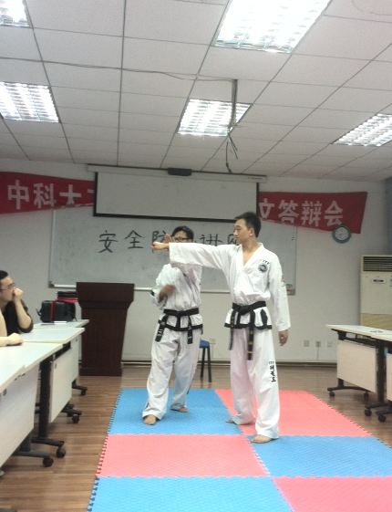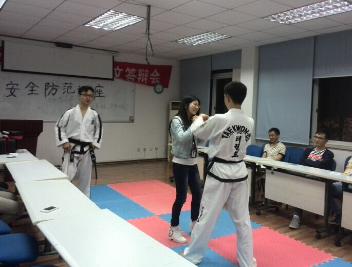 4月20日,中科院光电所研究生部武术协会特别邀请国际跆拳道联盟黑带四段龚琳教练于研究生部201教室举办安全防范讲座。30余名学生参加了讲座。