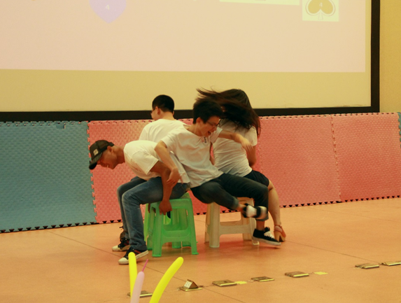 除了文艺表演,晚会还安排了颇有趣味的游戏环节。“抢椅子—真心话大冒险”游戏更是掀起了晚会的高潮。劲爆的问题,台下的尖叫欢呼,让“被惩罚者”进退两难,陷入窘境。大家都敞开心怀,玩得格外放松尽兴。