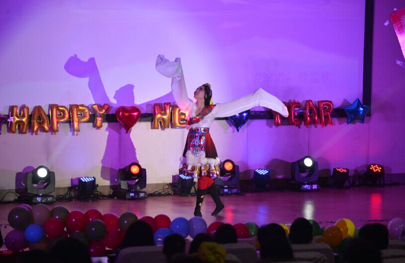 晚会节目类型多种多样,包括火热的舞蹈、有趣的相声小品、深情的歌曲演唱、灵动的乐器演奏等。晚会开场,由吉他协会带来的激情四射的乐器合奏《Amani》等更是从一开始就点燃了现场火热的气氛,吉他手、贝斯手、键盘手和鼓手齐齐上阵,拨动的琴弦、震动的鼓面、跳跃的琴键共同组成了一场震撼心灵的演奏。更有独特的吉他独奏《无题》和陶笛独奏《天空之城》,一个低沉中蕴藏火热,一个悠扬中不乏温情。由幼儿园老师和小朋友们分别带来了充满浓郁草原风情的藏族舞《香格里拉》和欢快活泼充满童趣的舞蹈《我不上你的当》,给现场的观众们带来了别样的视听盛宴。由向银辉为大家带来的歌曲《九寨之恋》更是在一出场便引来了观众的热烈呼唤。节目中间穿插了激动人心的抽奖和游戏活动,令现场气氛在全体观众的参与下更加沸腾。